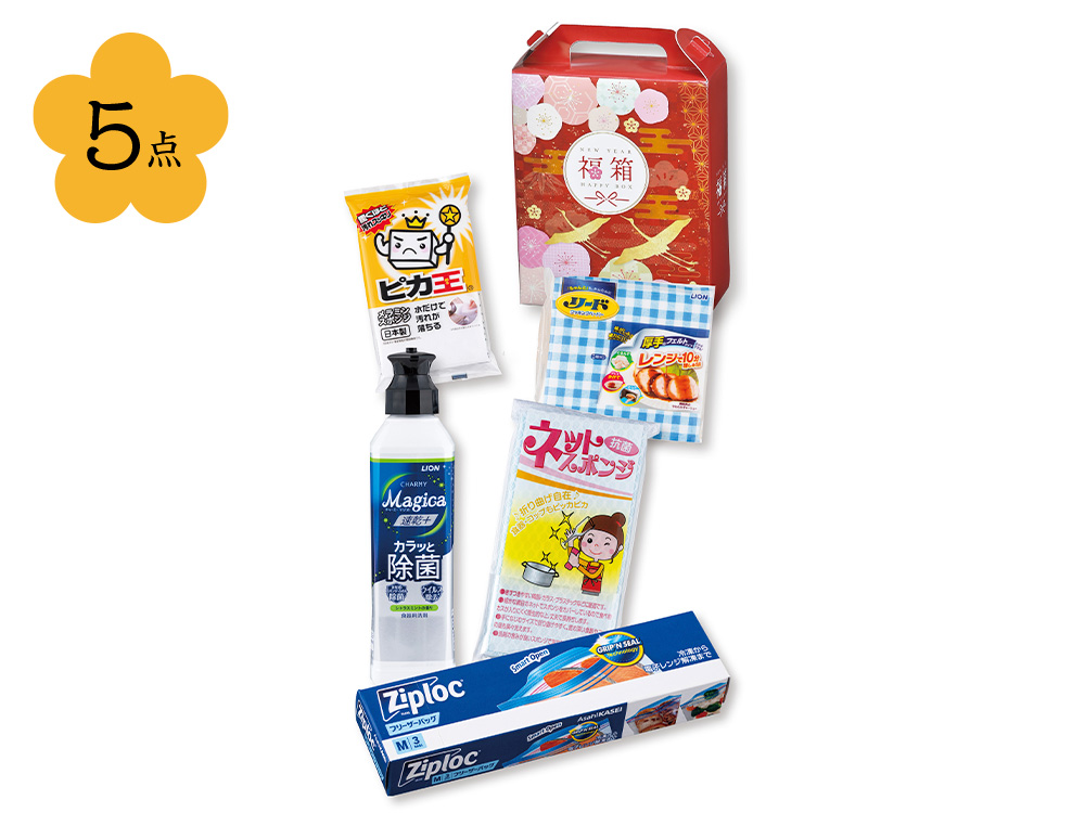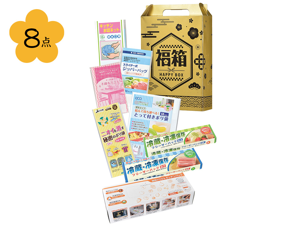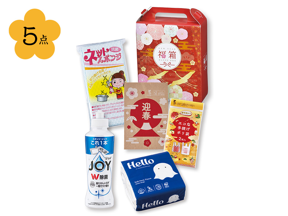 普段よく使う日用品4点を詰め合わせた、お渡ししやすいリーズナブルな福箱です。