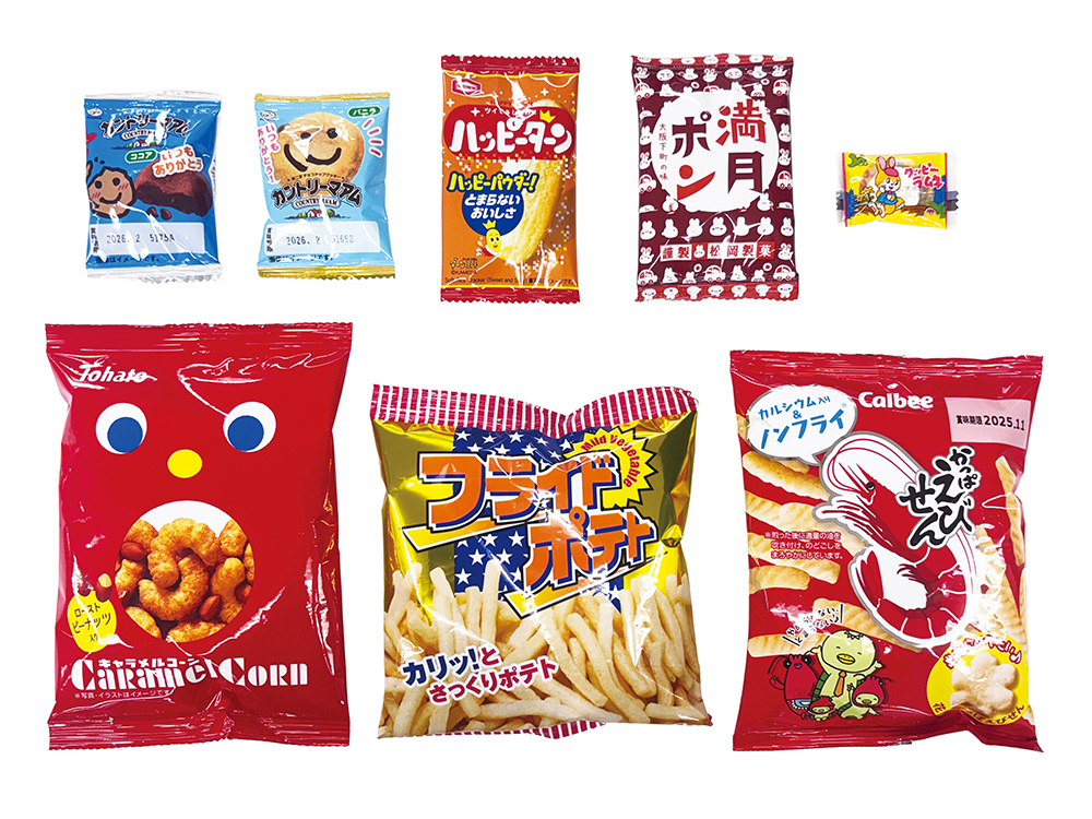 カルビーのかっぱえびせんをはじめ、東ハトのキャラメルコーン、不二家のカントリーマアムなど、メジャーで人気のお菓子を8点詰め合わせました。