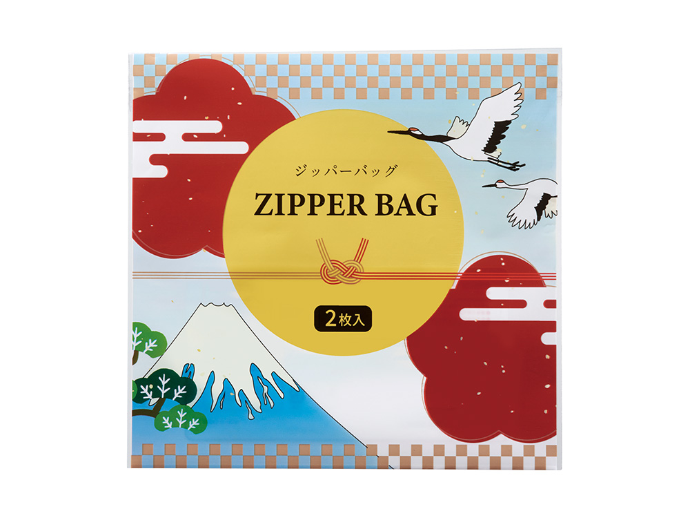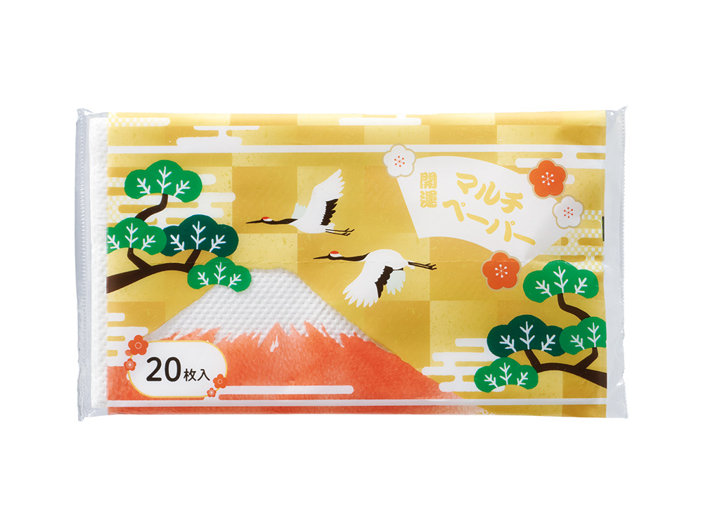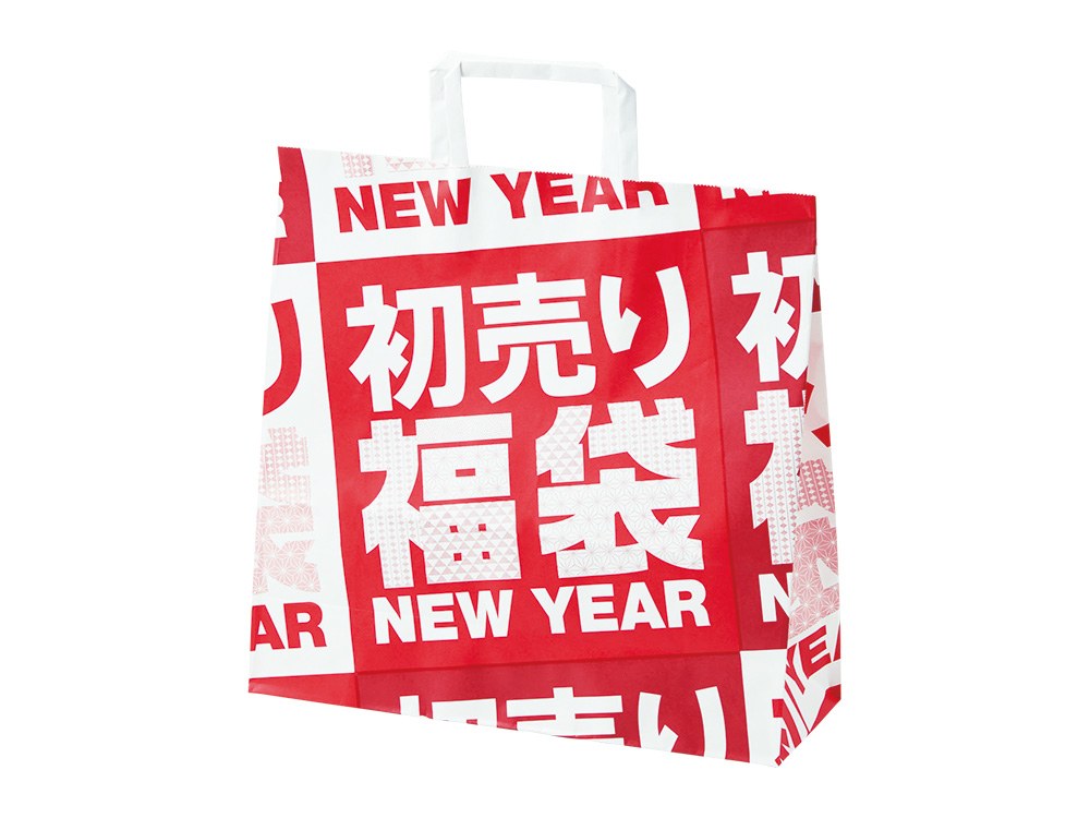 「初売り福袋」と大きくデザインされたインパクトのある福袋に、日用品が5点をセットしました。新春セールなど年始イベントの盛り上げ役にぴったりです。