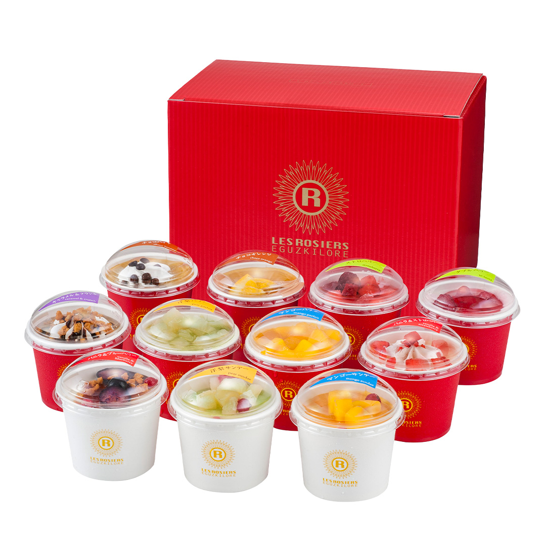 フランス国家最優秀職人章「M.O.F」受章の女性天才シェフ、アンドレ・ロジェ監修。一つ一つ手作業でトッピングした11種類のバラエティ豊かな彩りと味を楽しめる人気のアイスギフトです。