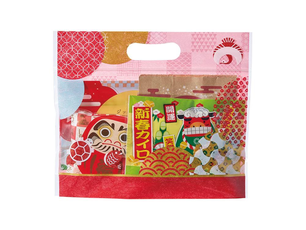 安価にも関わらず、4点ものアイテムが入ったお配りしやすい福袋。名刺やチラシも入れやすく、売りやブースを華やかに彩ります。マチ付きなので自立するのもポイント。