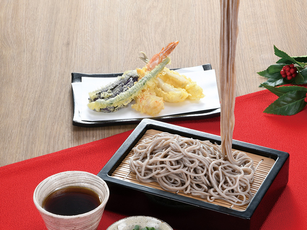 末永~いご縁を長~いおそばで紡ぎます。麺の長さは広げるとなんと約42cm!パッケージもボリューム満点の商品です。「人やものとのつながりを大切にする」という意味を込めた縁起の良い商品です。