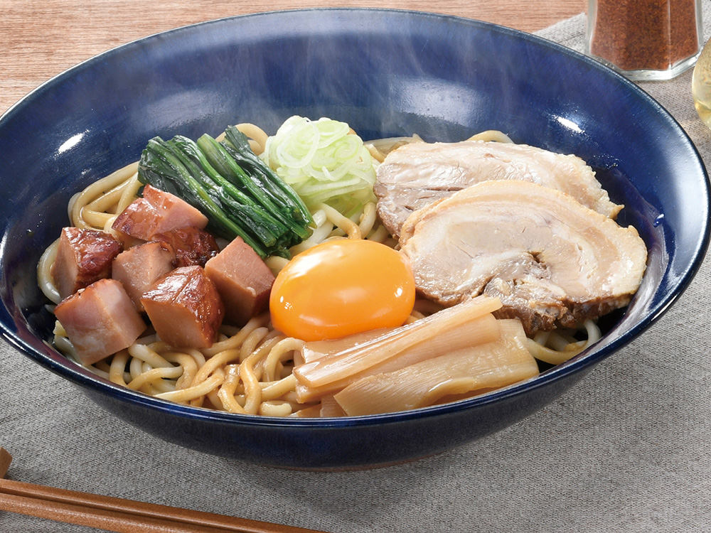 濃厚かつコク深いとんこつ醤油を、ラーメンORまぜそばスタイルで楽しめる!とんこつスープの香りが食欲をそそるラーメンと、卵をからめながらいただくまぜそば、どちらも甲乙つけがたい!