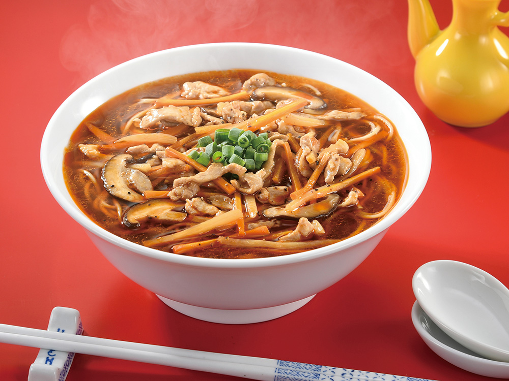酸味と辛み、とろみのあるスープが特徴の食欲そそる一品です。酸辣湯麺(スーラータンメン)は、酢や黒酢の酸味と胡椒やラー油の辛味が特徴的な中華スープである「酸辣湯」に麺を加えた日本式中華料理です。キノコや豚肉、ネギなどを加えてお召し上がりください。