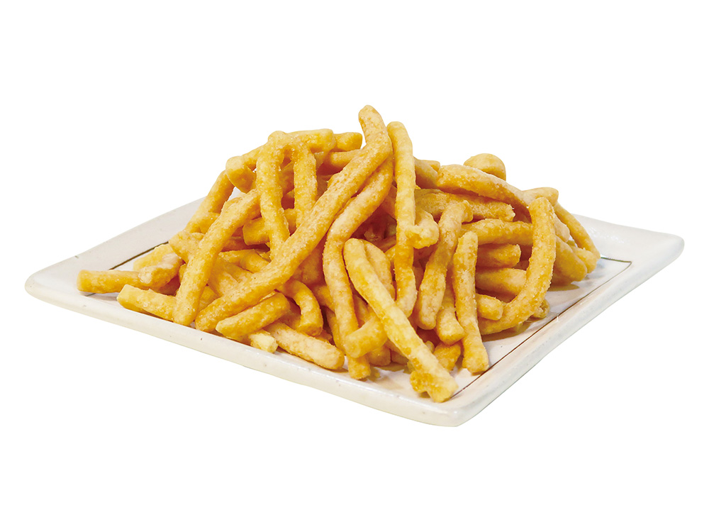 老舗さぬきうどんメーカーが自社のうどんを揚げてみました。あっさり塩味です。製造過程や流通過程などで規格外になった麺がお菓子に生まれ変わりました。独自の製法でていねいに作り上げた新食感のお菓子です。環境に配慮し、パッケージは極力プラスチック素材を使用せず、紙素材にこだわりました。