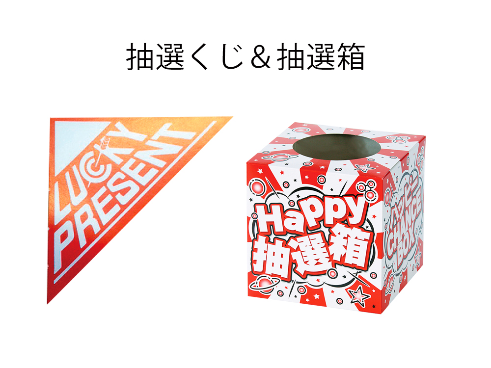 抽選くじ・くじ箱などの付属品もセットになっているので、納品後すぐにイベントが開催できます。