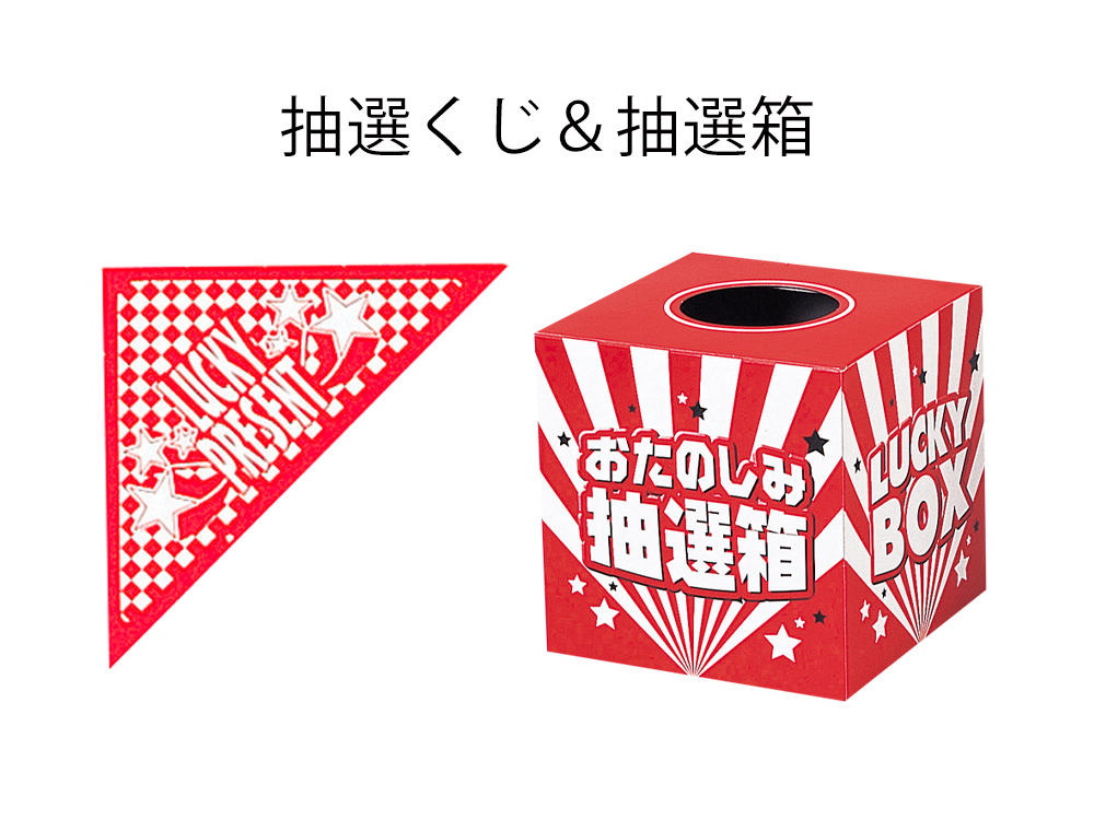 抽選くじ・くじ箱などの付属品もセットになっているので、納品後すぐにイベントが開催できます。