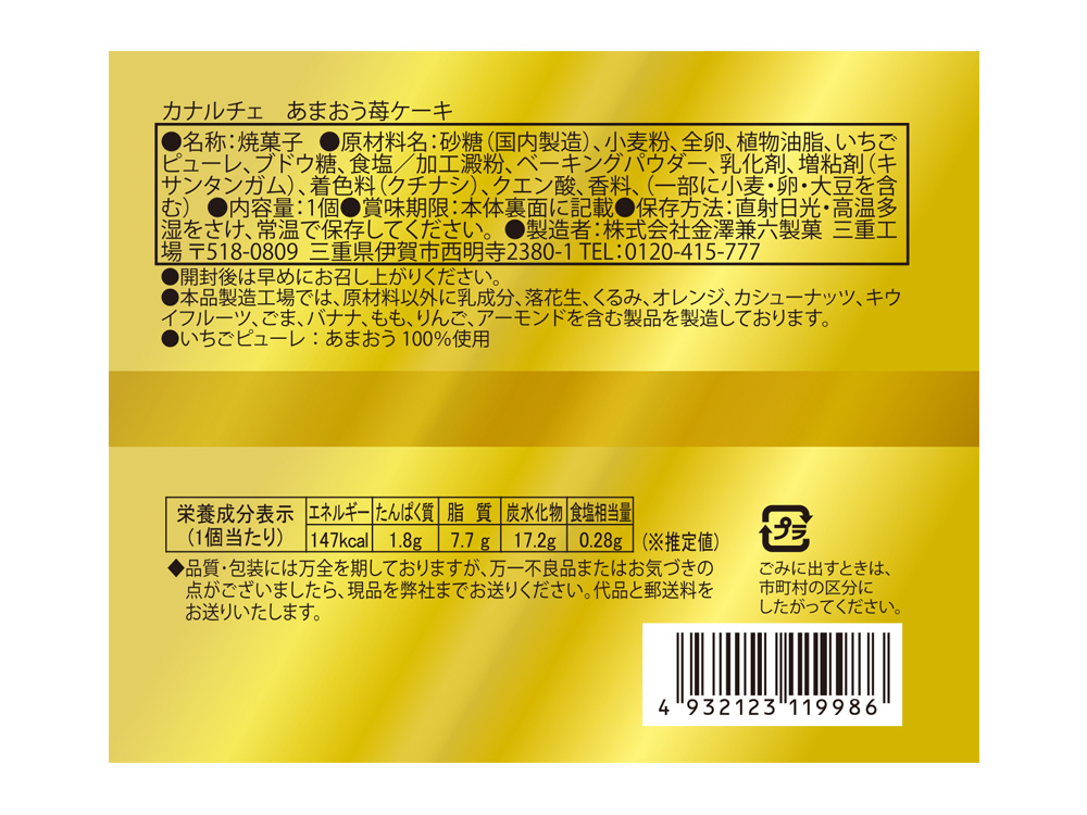 | 商品 | カナルチェ あまおう苺ケーキ1個 |
