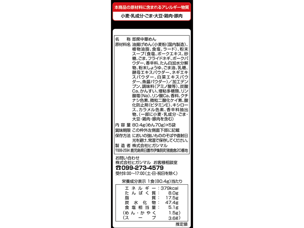 | 商品 | 鹿児島丸豚ラーメン5食 |