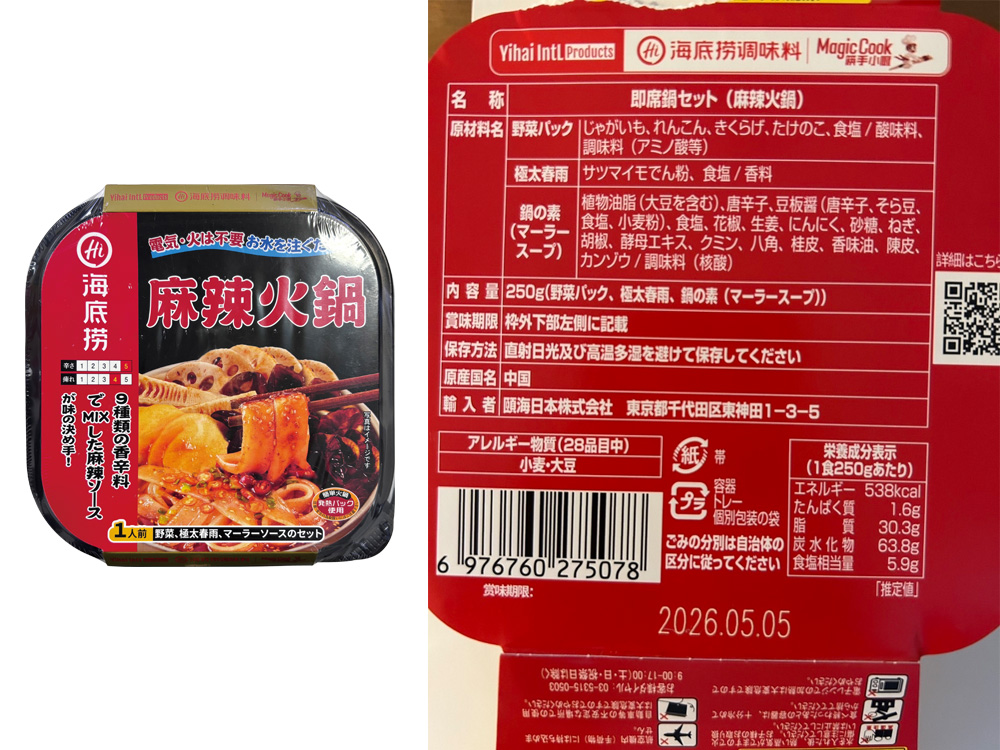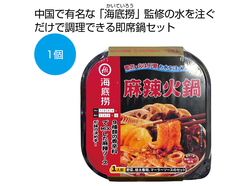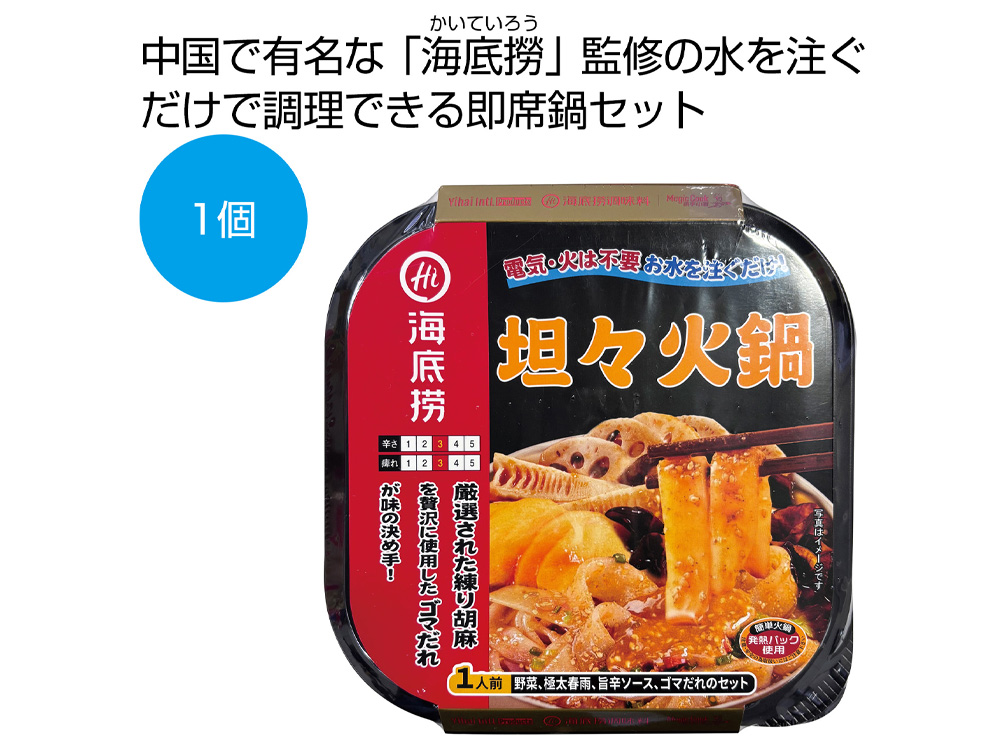 世界No.1火鍋ブランド「海底撈)」の火鍋を、電気・火を使わず水を注ぐだけで楽しめます。