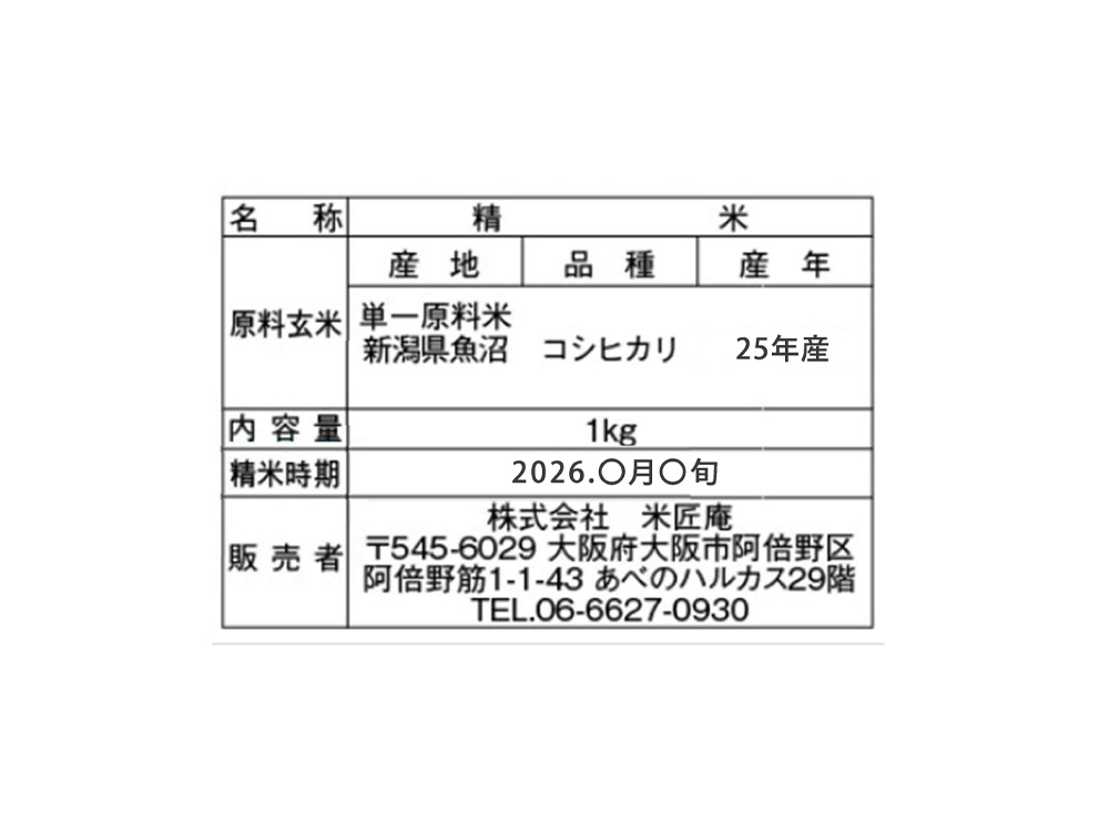 | 商品 | 新潟県魚沼産こしひかり1kg(化粧箱入り) |