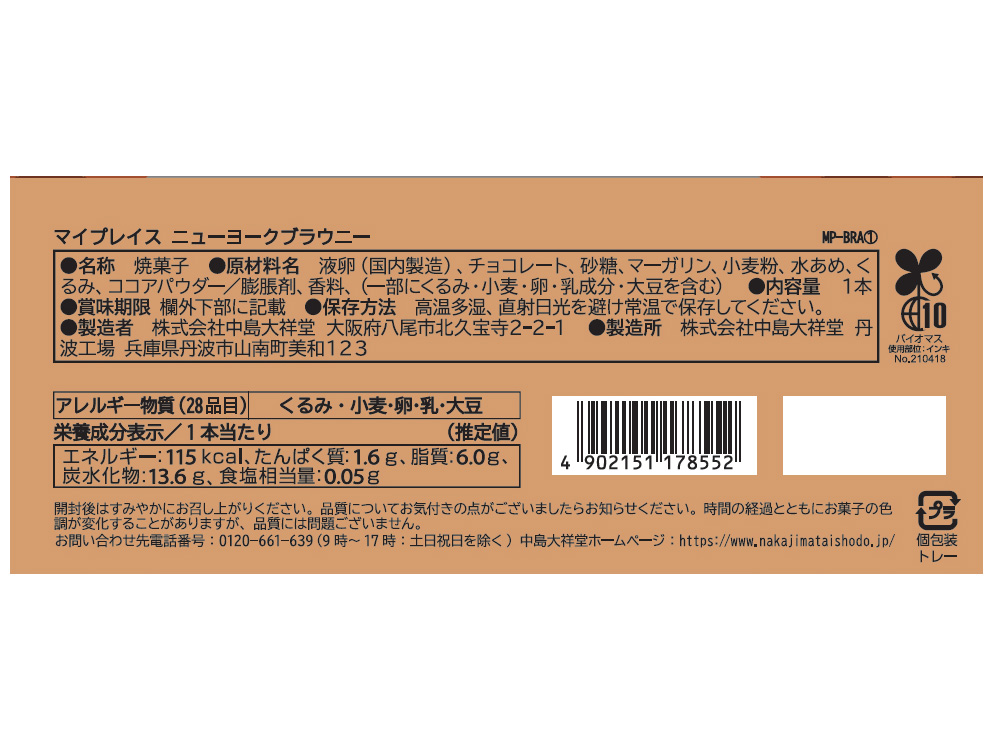ニューヨークブラウニー:アメリカで生まれたしっとり濃厚なチョコレートケーキ。ローストしたくるみの香ばしさがアクセント。