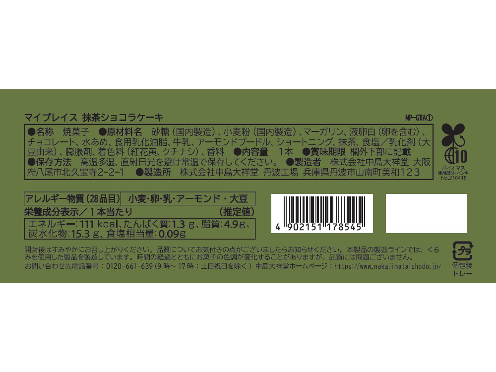 抹茶ショコラケーキ:京都府産宇治抹茶と、ビターチョコレートのハーモニー。ほろ苦さを愉しむ大人の味わい。