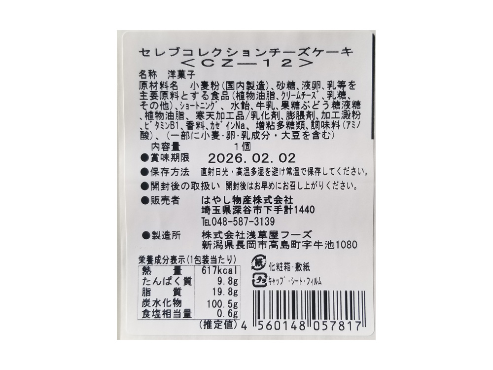 | 商品 | セレブコレクション チーズケーキ190g |