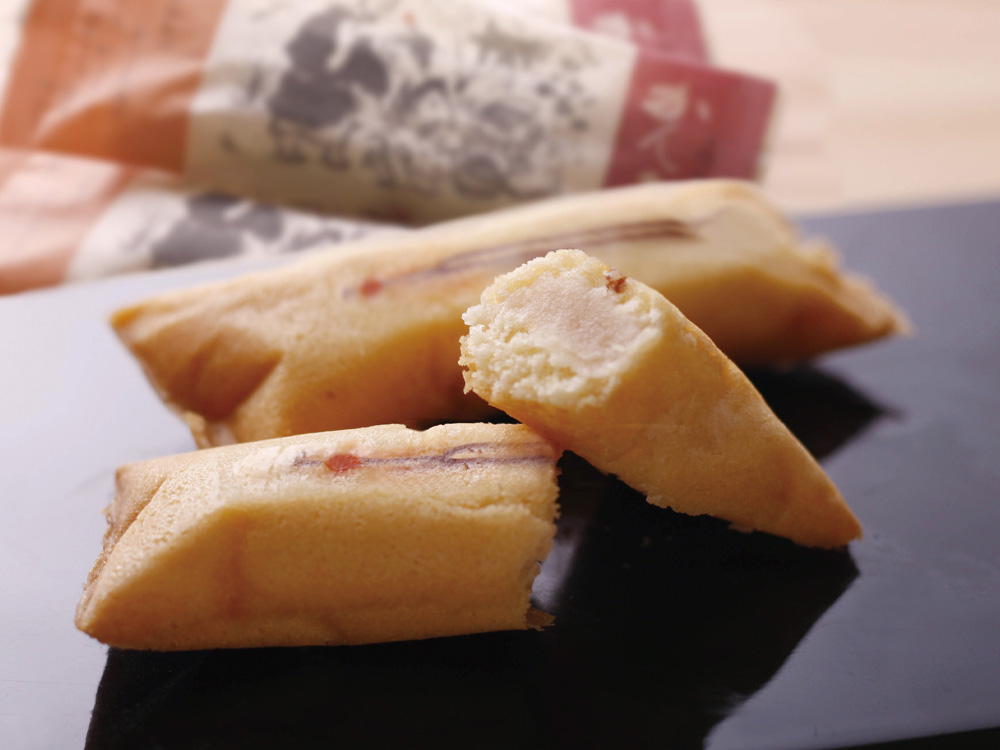 しっとりとしたマドレーヌ生地で柚子ピールの入った白餡を包んだ、高知県で60年以上愛される銘菓です。