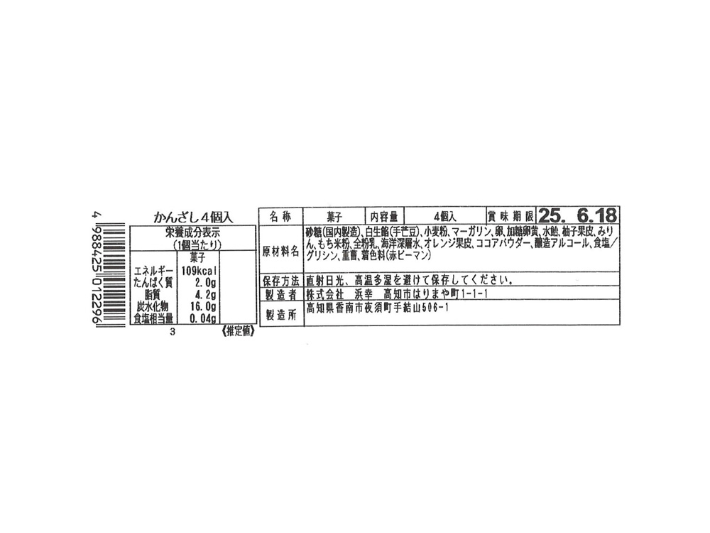 | 商品 | 土佐銘菓 かんざし4個入 |