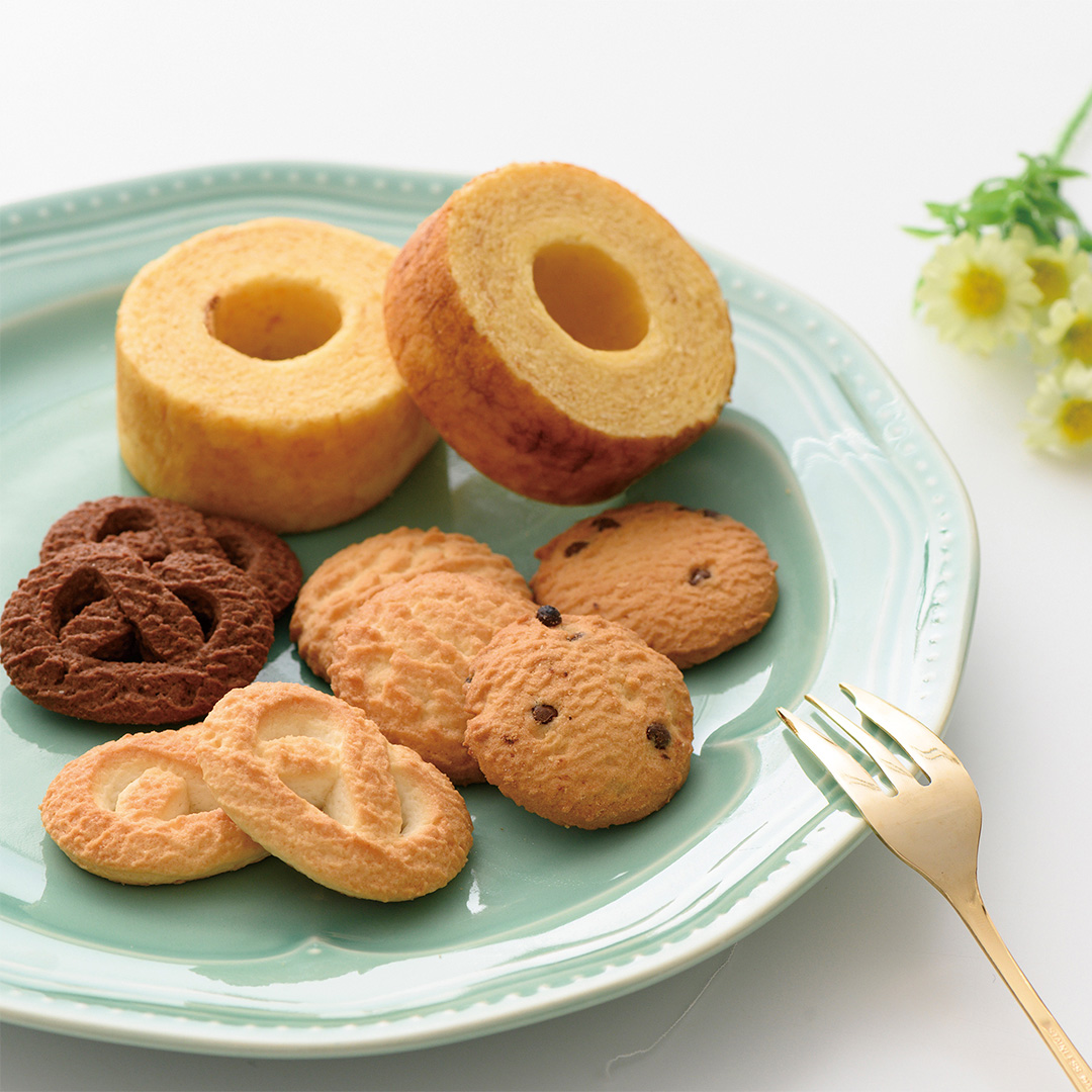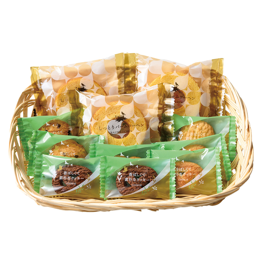 森の詩を奏でる焼菓子たち。しっとりしたバームクーヘンと香ばしくて素朴なクッキーの詰合せです。