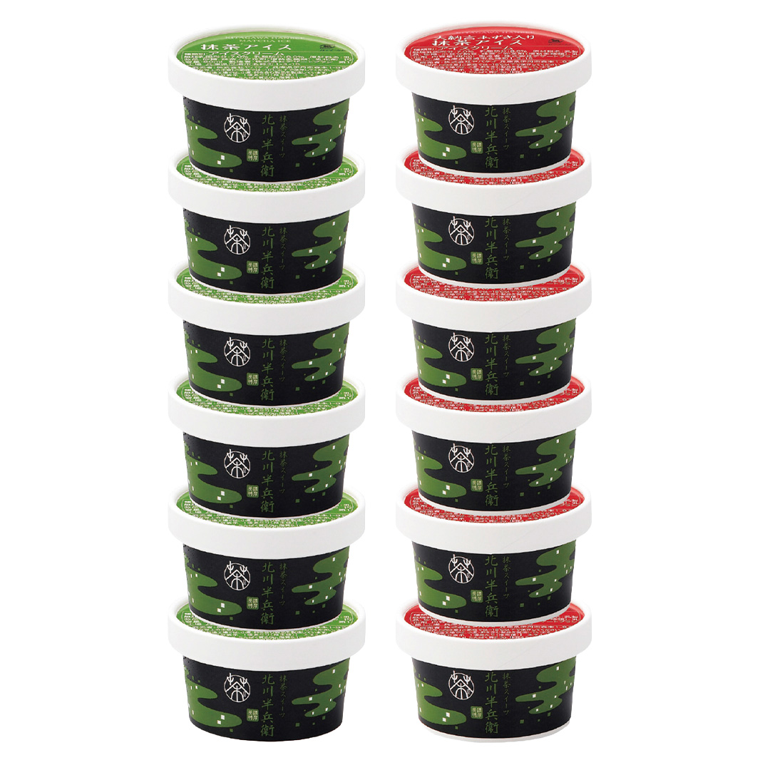 馥郁としたあずきと抹茶の風味をお楽しみください。京都老舗の抹茶をたっぷりと使いました。2種類のカップアイス、抹茶の風味と濃厚な味わいをお楽しみいただけます。