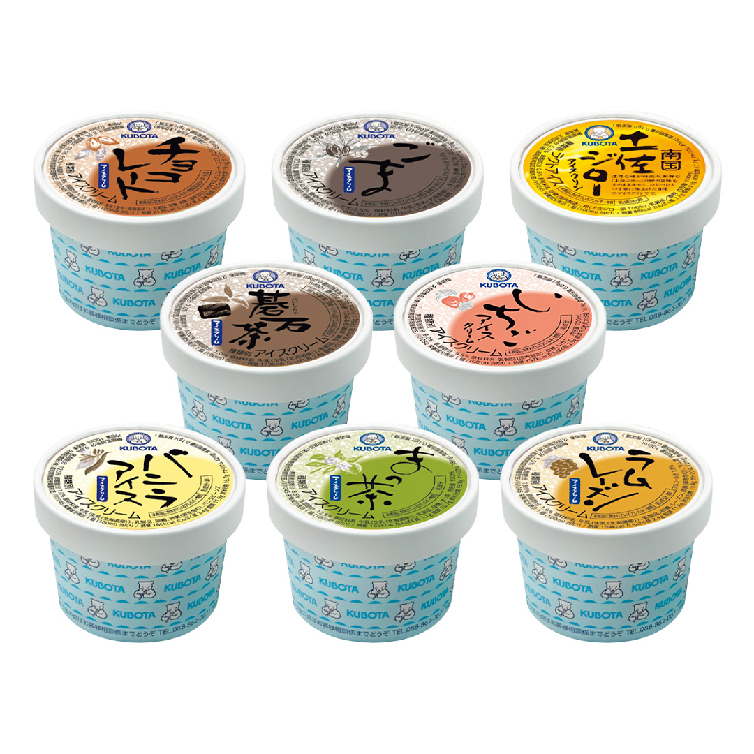 素材感を活かすためにシンプルな材料で作ったアイスセットです。バニラや抹茶、ラムレーズンなどの定番フレーバーに加えて、高知特産の碁石茶や土佐ジローの卵で作ったレトロでサクサク食感のアイスクリンなど8個の詰め合わせアイスセットです。