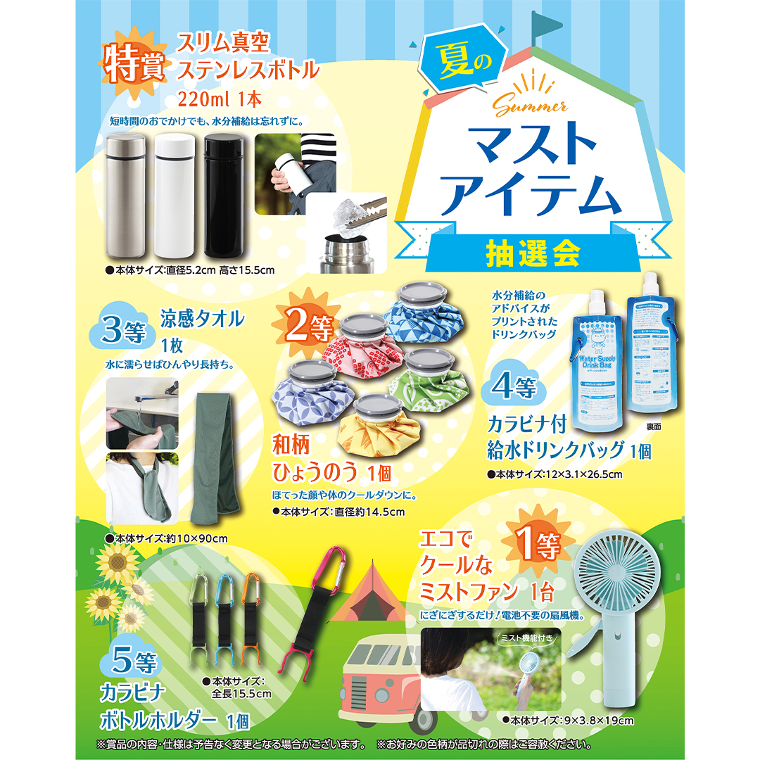 | 商品 | 夏のマストアイテム抽選会(30人用/50人用) |