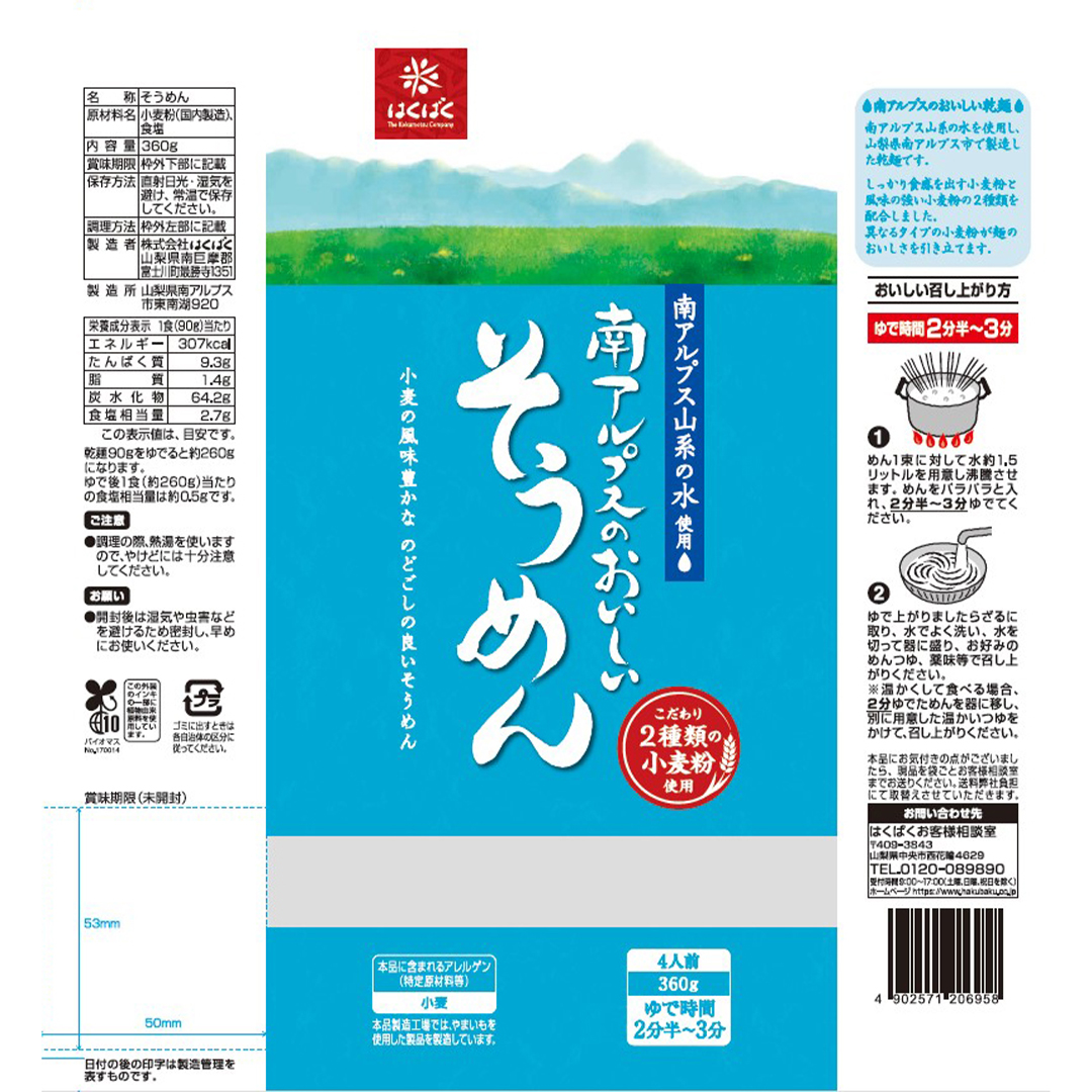 | 商品 | 南アルプスのおいしいそうめん4人前(360g) |