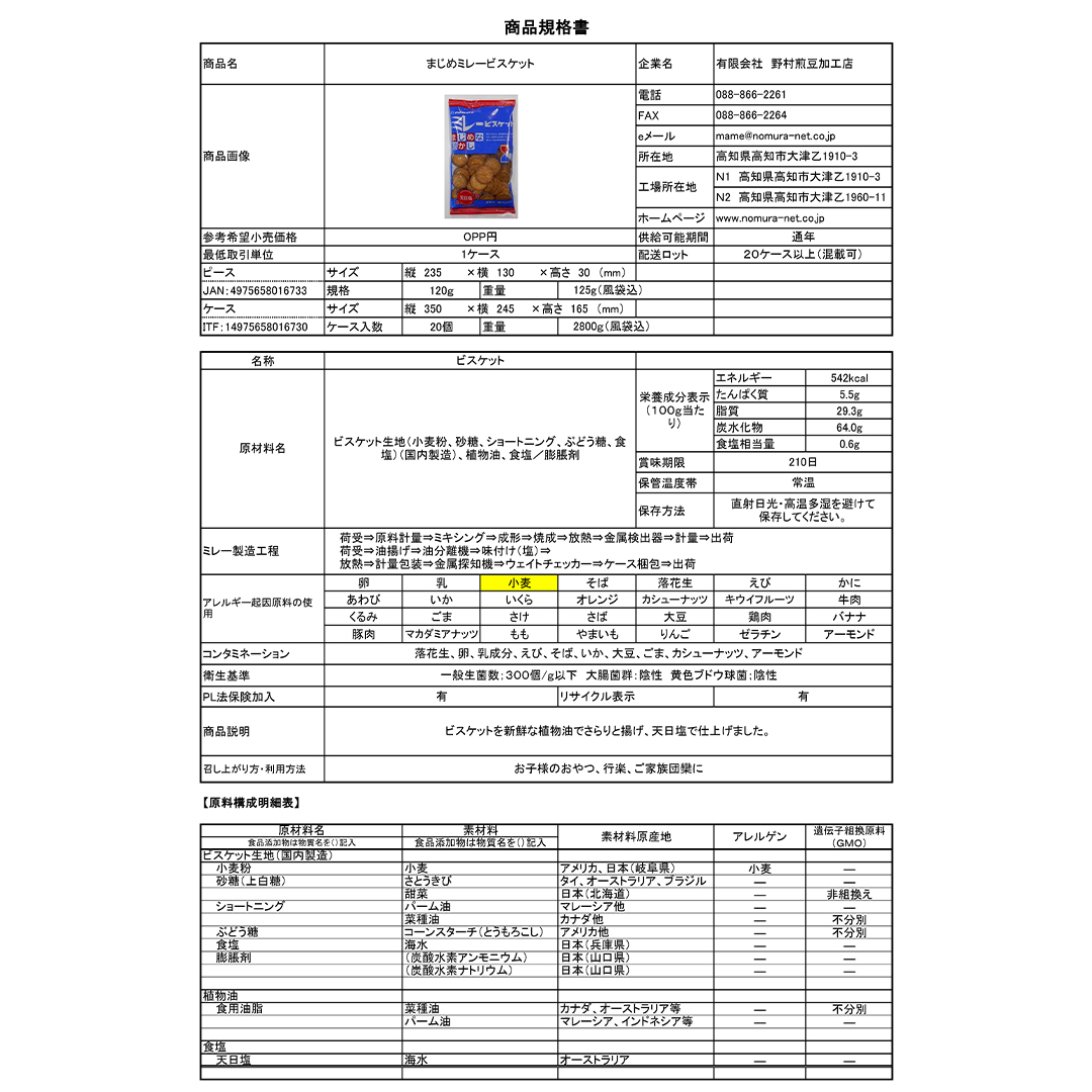 | 商品 | ミレービスケット まじめなおかし120g |