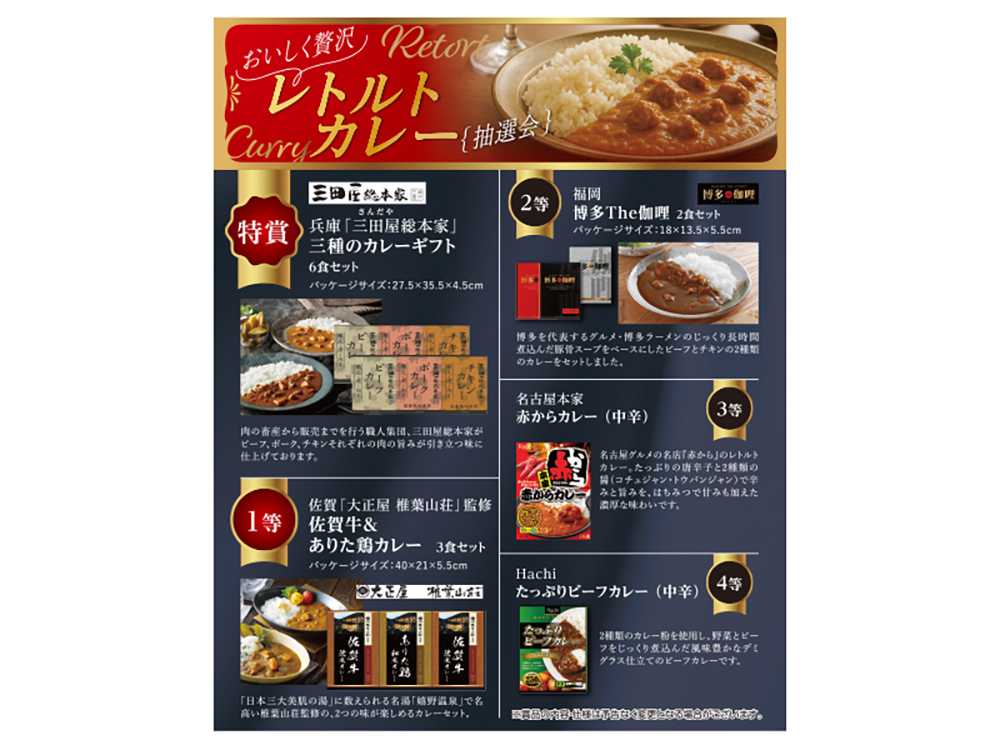 「おいしく贅沢 レトルトカレー抽選会」は、数あるカレーの中から特別感のあるものをピックアップ!