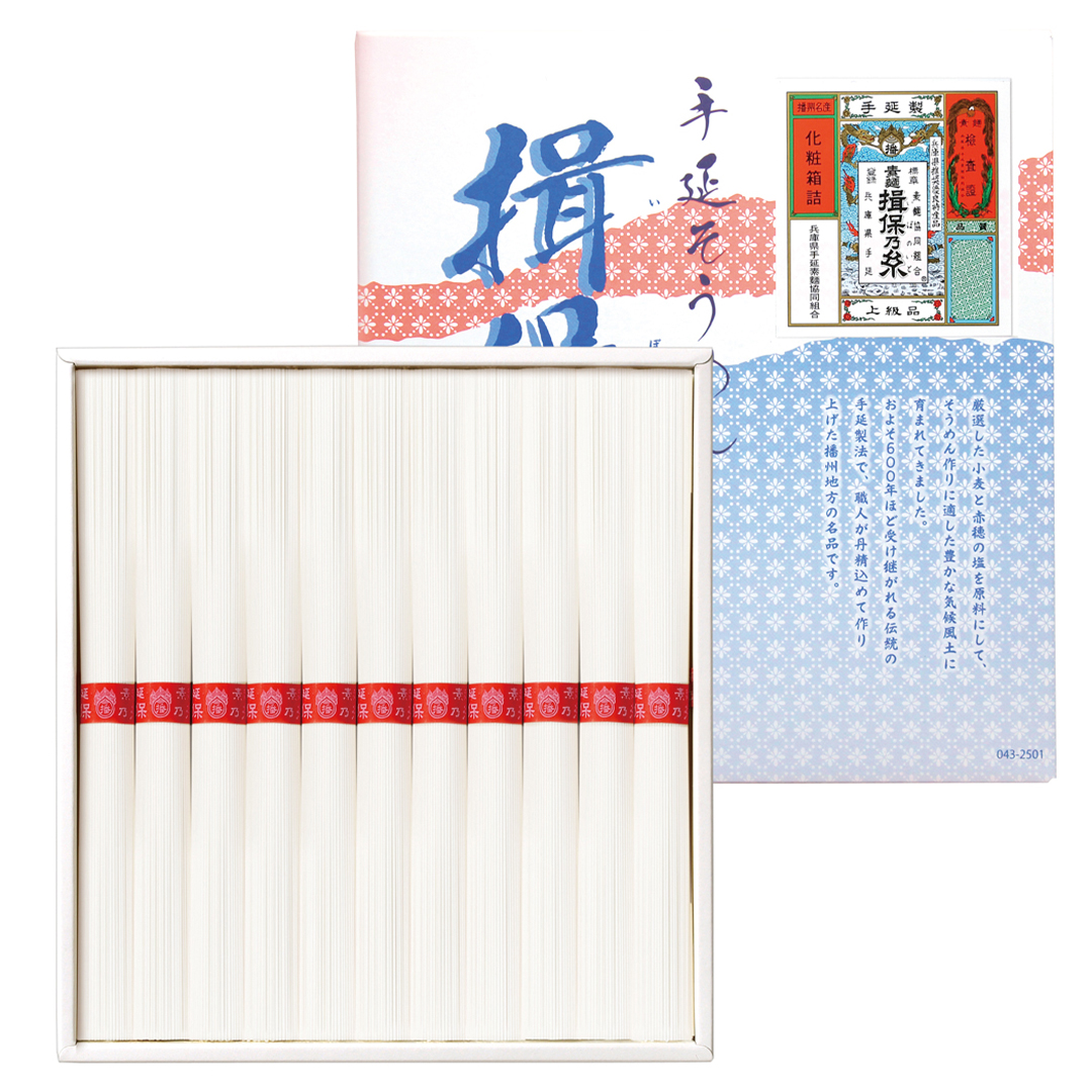厳しい検品に合格をした上級品質の揖保乃糸素麺は、当然それなりのお値段はしますが賞味期限も約3年と非常に長いため、夏場の商談会でのご成約記念や大切なお客様へのご進物に最適です。
