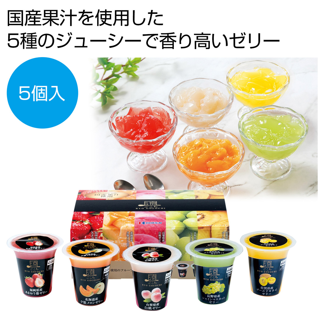 【フルーティーデザート】は、とろけるような口当たりのフルーツゼリー2種(熟果ゼリー グレープと熟果ゼリー メロン)にマンゴープリンがセットになった夏のスイーツギフト。