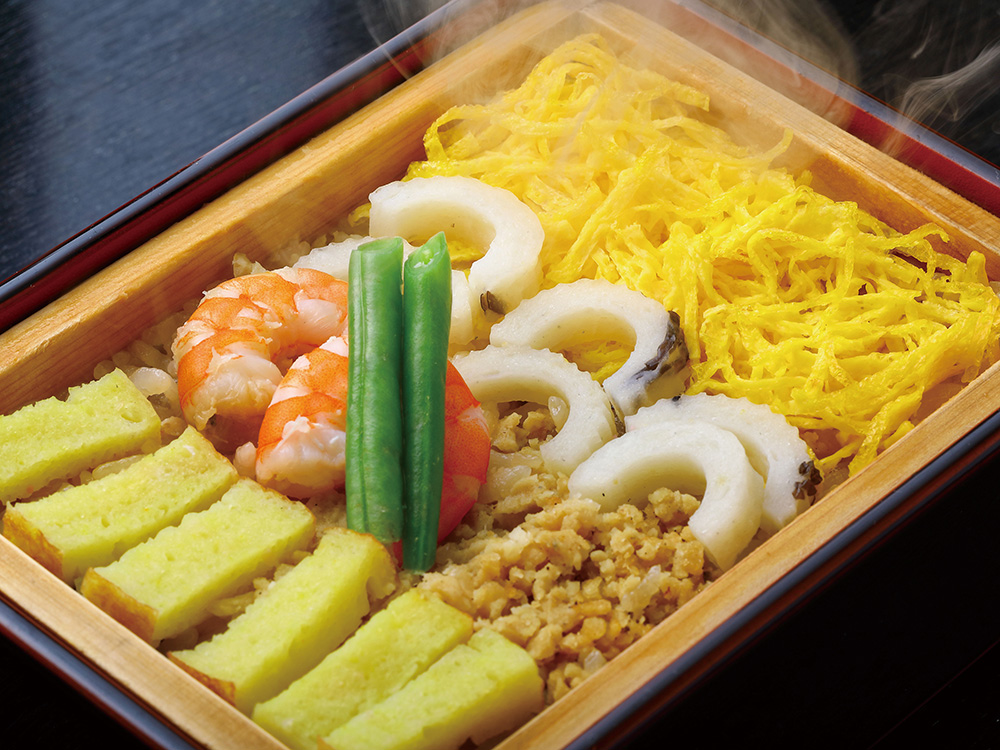 土佐の高知新京橋で本格職人寿司を提供する菊寿司の「蒸し寿し」です。オリジナルの酢飯には四万十産のしいたけ・沖縄産の黒糖を混ぜ込み、温めることでまろやかで懐かしい風味がより一層引き立ちます。熱々にしてお召し上がりください。