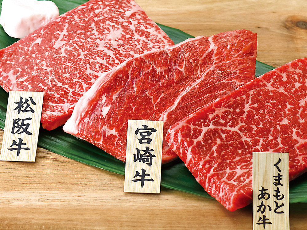 銘柄牛3種それぞれの肉質、赤身肉の美味しさをお楽しみください。松阪牛(三重県)・宮崎牛(宮崎県)・くまもとあか牛(熊本県)のもも肉をステーキ用にカットしてお届けします。