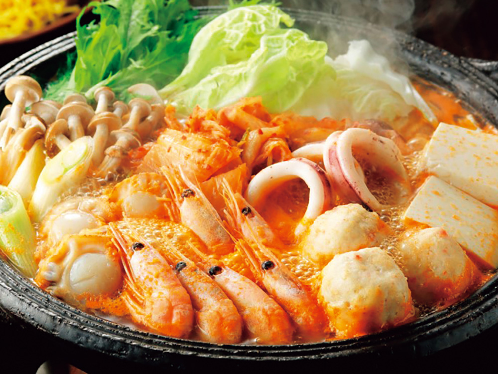 本場韓国の白菜キムチを使い、多彩な魚介を詰め合わせました。ピリ辛の「キムチ鍋」は季節を問わずお楽しみいただけます。ご自宅の野菜も一緒に煮込んでからお召し上がりください。