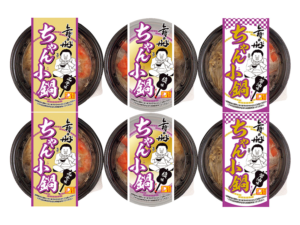 元大相撲力士 舞の海が監修した、電子レンジで温めるだけで手軽に食べられる一人前用の小鍋セットです。紅ずわいがにの旨味がきいた塩味と、鱈や鮭などの具材と相性の良い醤油味、バターのコクが後を引くみそ味の3種類をお届けします。