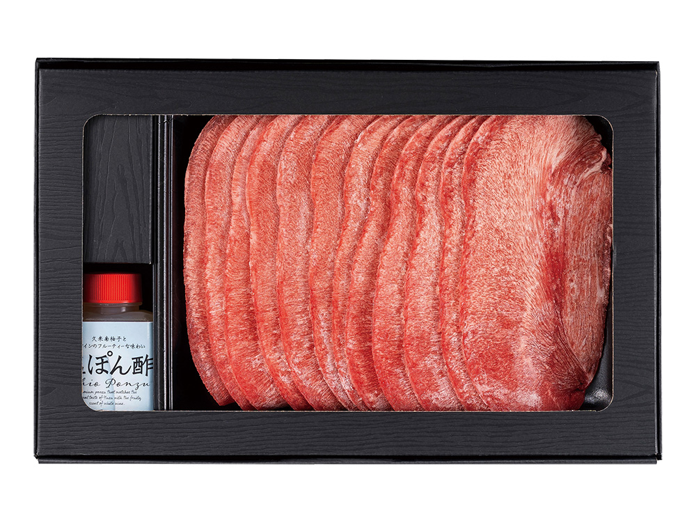 タン先からタン元まで堪能!自慢の塩ぽん酢でどうぞ!焼肉や煮込み料理として人気の高い「牛タン」を、しゃぶしゃぶに仕立てました。岡山県産久米南ゆず果汁を使用した「塩ぽん酢」をセットに。牛タンの旨味を更に引き立てる自信の塩ぽん酢です。